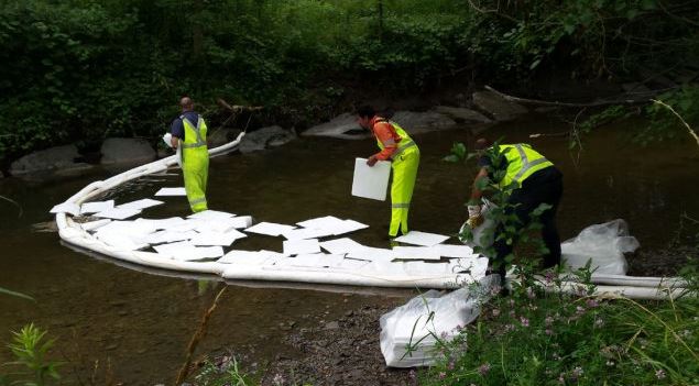 Toronto Fire has installed a boom across the mouth of Mimico Creek to prevent the further spread of the oil into Lake Ontario.