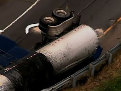 The tanker turned on its side on the ramp from VA 606 to northbound Route 28 in Oak Grove.