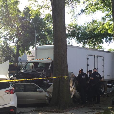 The call came in to 911 at 6:39 a.m. Monday. The crash happened on Francis Lewis Boulevard between 49th and 50th avenues in the Auburndale section of Queens.
