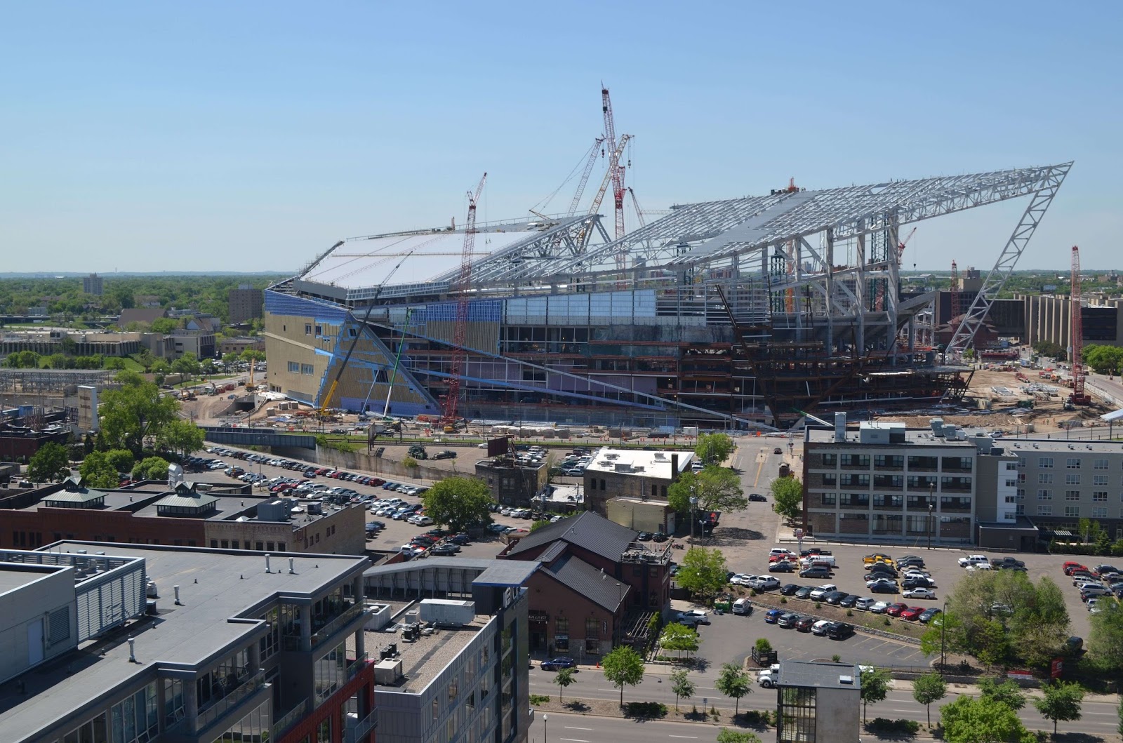 Demolition of the 32-year-old Metrodome occurred in early 2014, and construction of the new building began shortly thereafter.