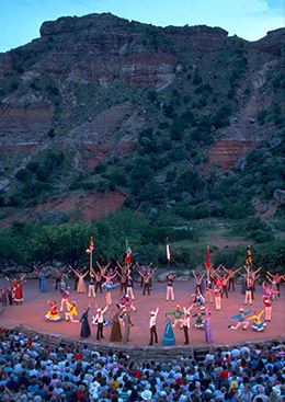 The amphitheater is about 25 miles south of Amarillo. The outdoor musical “TEXAS” has been performed there for 50 years. Pyrotechnics are used throughout the show.