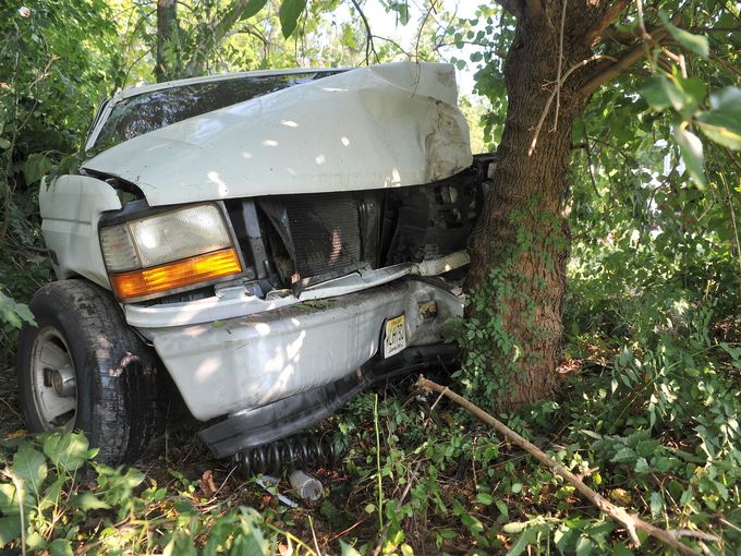 At about 5 p.m., police and rescue crews were dispatched to the scene for a white Ford F150 pickup that ran off Main Road. The truck ran over landscaping in a front yard in the 3200 block of South Main Road and crashed into a cluster of trees.