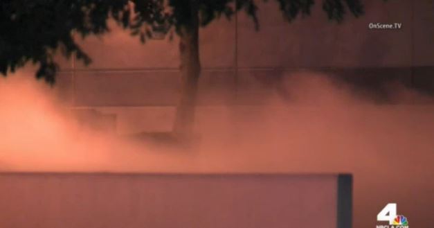 Shortly after 1:30 a.m., an employee alerted authorities of a 40,000 pound liquid carbon dioxide tanker that was leaking in the 9800 block of Jordan Circle near McCann Drive, according to the Los Angeles County Fire Department.