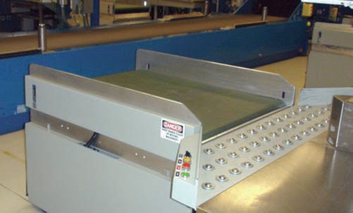 The automatic baggage moving system (Figure 2) is a conveyor that helps move the bags from the screening area to the outbound conveyor. Unlike the traditional conveyor systems, this system does not connect the two ends of the working area. It connects to one end at a time, then moves itself automatically to the other end as it senses the bag that is loaded to the moving system. This system might be shared between two work stations connected by a roller bed. This intervention eliminates lifting entirely, but requires manual pushing to load the bag from the screening table through the roller bed to the baggage moving system.