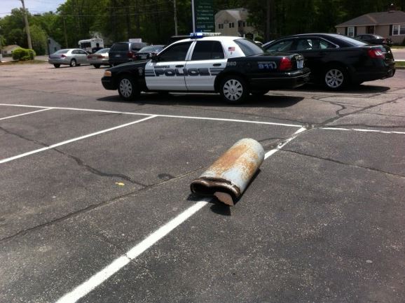 The tank knocked down several tree limbs as it shot over Route 139, also called Plain Street , and landed in a parking lot by the liquor store, Tavares said.