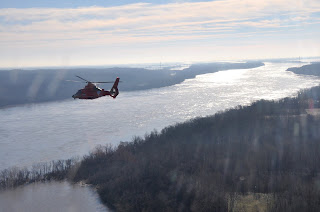 Air crews perform a vital function during responses, as they are able to get a birds-eye view of affected areas, while simultaneously having the ability to affect rescues if need be. This overflight monitored the area on the Mississippi River near Cape Girardeau.