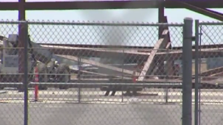 Assistant Chief Johnson said the large metal beams fell at the site where aircraft hangars are being built.
