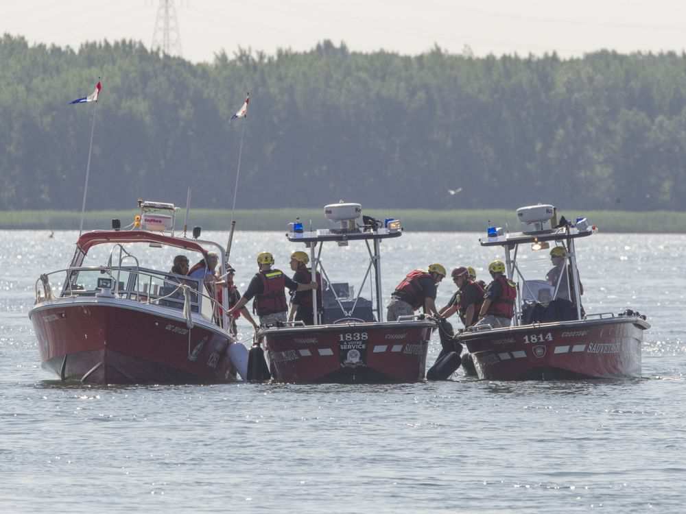 The Coast Guard and local authorities are conducting an investigation, and the search is expected to resume Thursday. It will include a larger stretch of the St. Lawrence, as the current may have carried objects from the scene for miles downriver.