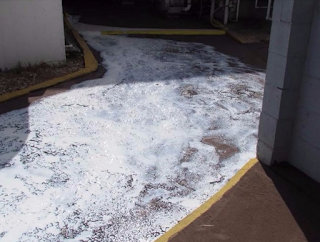 Caustic chemical dump turns creek white