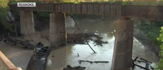 The Texas Commission on Environmental Quality noted three rail cars fell directly into the water. Coal and railroad ties also fell into the water, but no other materials of concern, according to agency spokesman Brian McGovern.