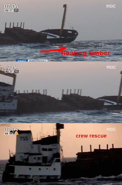 22 Aug UPDATE: 15 crew were rescued by Korean Coast Guard, no injures reported. Timber which went overboard is now drifting, posing a threat to shipping in the area. Vessel reportedly drifted to shallow and is now aground in position 33 54N 128 01E, 54 nm south-south-east from Yeosu, but this is not confirmed.