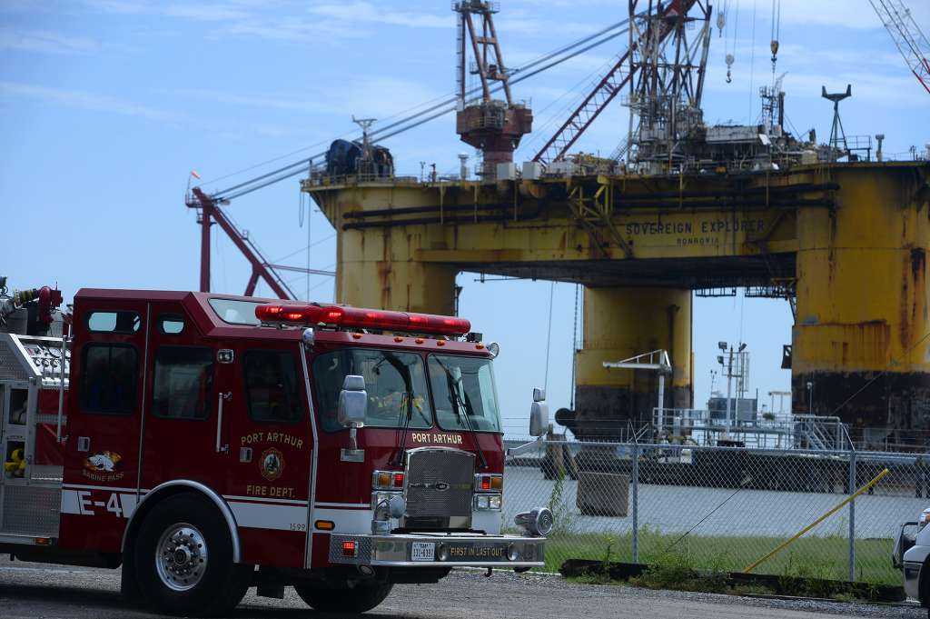 A worker died after he fell from the decommissioned Sovereign Explorer rig in Sabine Pass on Tuesday.
