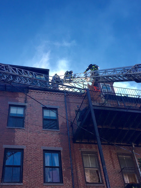 Around 3:33 p.m., firefighters responded to the area of 73 Rutland St., near Tremont Street, for a report of a rooftop fire at a brownstone, according to the department. The four-story building has four units, with one per floor.