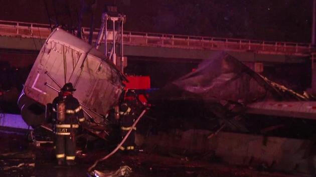 Police say the big rig, carrying blank pennies and headed to the U.S. Mint in Philadelphia, slammed into a Jersey barrier, overturned and caught fire.