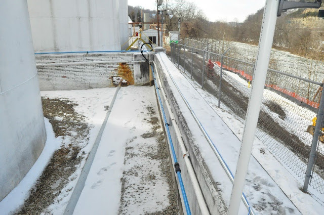 The West Virginia American Water Co. intake facility on the Elk River in Charleston as seen on Jan. 10, 2014, the day after the Freedom Industries chemical spill. A federal judge ruled Monday that hundreds of thousands of those affected by the spill cannot pursue claims against West Virginia American Water’s parent company, one of several rulings expected before a trial next month.