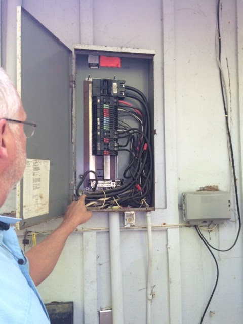 Representatives of Future Connections Electrical located and excavated the break in the conductor (see image 3). The conductor was fully corroded and unable to conduct electricity. The electrical feeder terminated in a 60 ampere fusible disconnect (see image 4) inside the pool house. The disconnect was fused as 40 amperes on one leg and 60 amperes on the other leg. The disconnect appeared to be in proper working order and the overcurrent was set to within acceptable limits for code compliance.