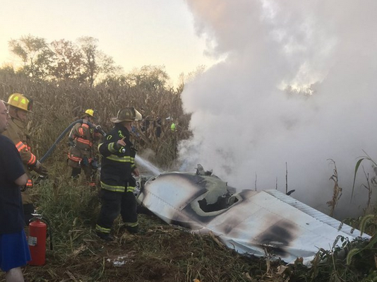The small aircraft crashed in a field and caught fire. Officials say it was a single engine plane and one person did not survive.