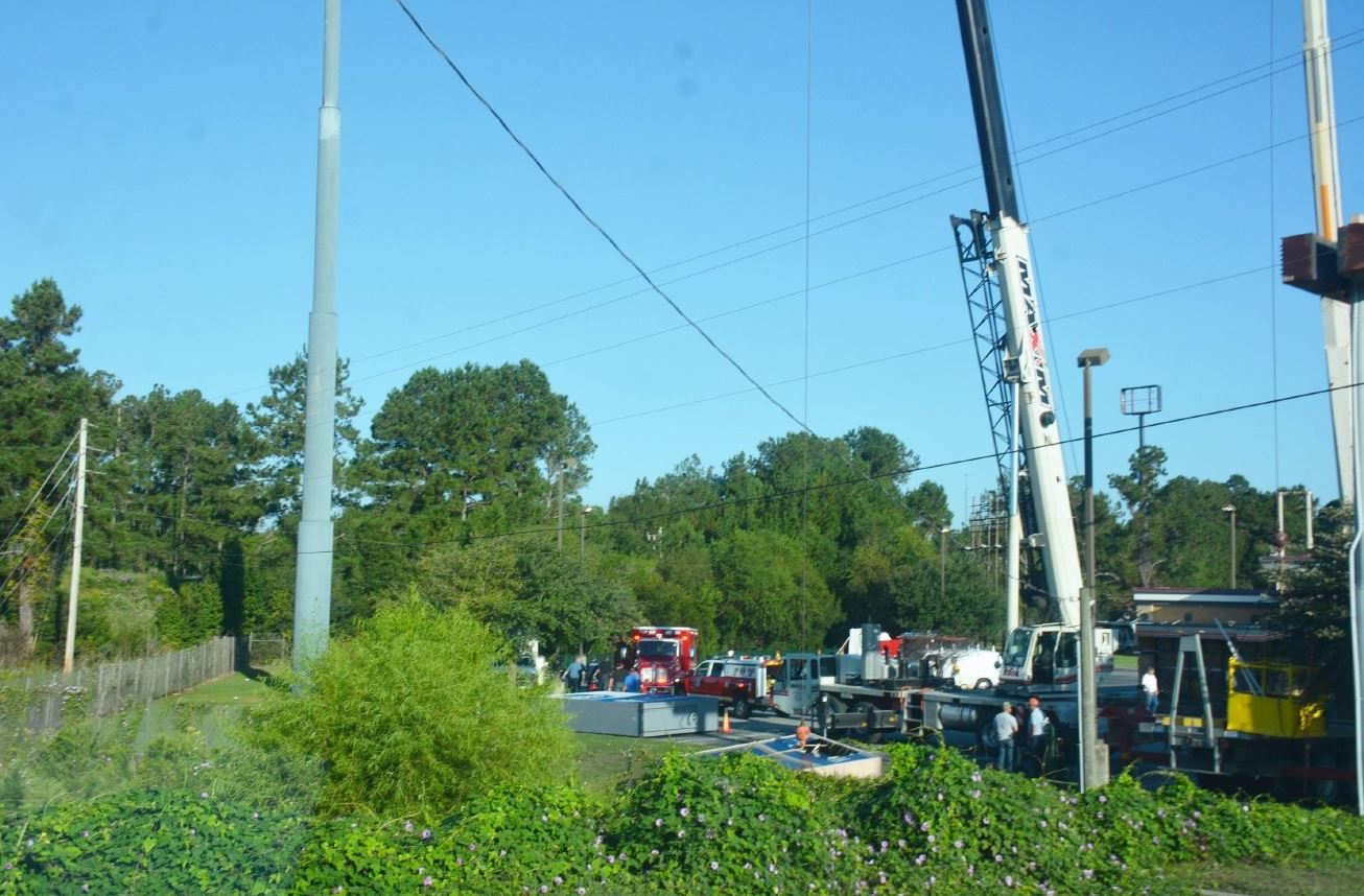 According to CCFR officials, a 31-year-old Georgia man was guiding a large Best Western motel sign in place when the crane cable hit a power line overhead.