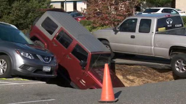 BETHPAGE, Long Island (WABC) -- A large sinkhole opened up in a parking lot on Long Island on Friday afternoon.