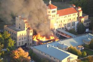 The fire consumed a building on the campus of St. Michael’s Villa.