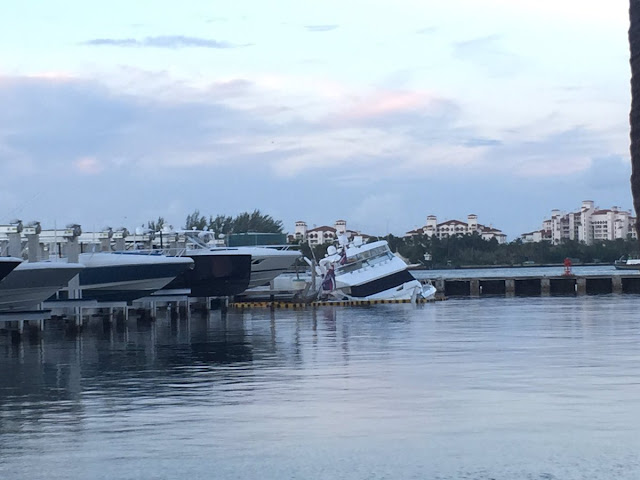 The first happened around 11:30 p.m., when a stream of 911 calls complained of a large boat crashing into other boats at the marina, at 300 Alton Road near the southern end of South Beach. Police found an 80-foot yacht crashed into dock pier L and “substantial damage to numerous docked boats,” according to Miami Beach Police spokesman Ernesto Rodriguez.