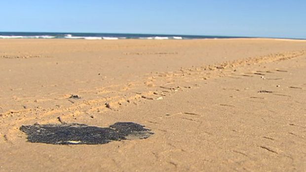 An image of one of the oil "patties". Photo: Sarah Best / 7 News Queensland "A helicopter searched the ocean around that area and has been unable to identify an oil spill in the water," he said.