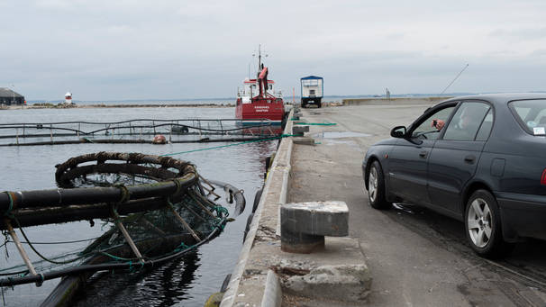 Ship surveyed in Kolding after running into fish farm.