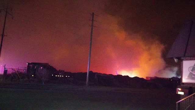 The fire started about 2:45 a.m. at C. S. Carey, a land clearing, tree grinding and wholesale mulch business near 65th Street and Kansas Avenue.