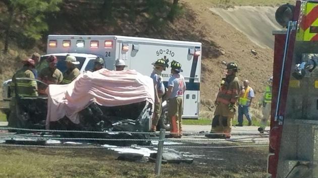 Pictures from Chopper 11 showed a burned car near the median and an SUV near it with heavy front end damage.