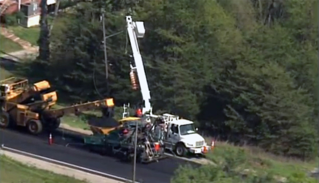He said appears that a dump truck clipped a power line, while the paving process was taking place, causing the power pole to flex and crack causing the power lines to drop down and touch Whitmire's body.