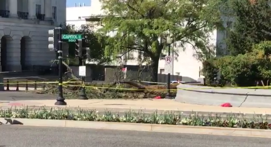 U.S. Capitol police say grounds crews are removing what remains at the tree. A portion of Independence Avenue remains closed.