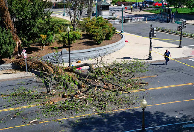 The U.S. Capitol Police said Independence Avenue between Washington Avenue and First Street would remain closed while the Capitol Police investigate the accident scene. The USCP said grounds crews from the AOC are inspecting the tree and remove the remaining debris.