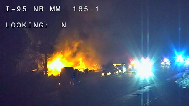BREVARD COUNTY, Fla. - Southbound lanes of Interstate 95 were closed Thursday morning after a tractor-trailer was involved in a fiery crash near Grant-Valkaria, the Florida Highway Patrol said.