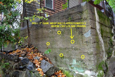 behind the wall (lack of weep holes or clogged holes), foundation footing problems,