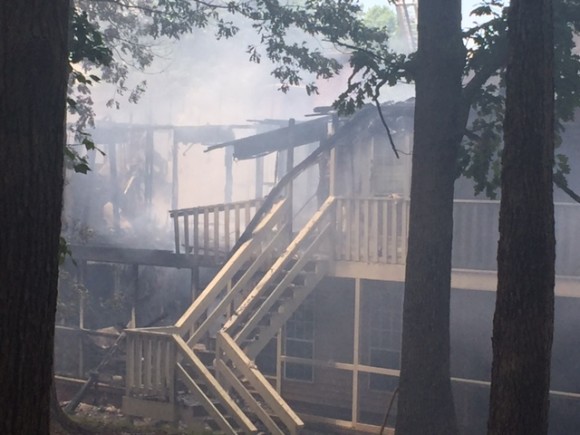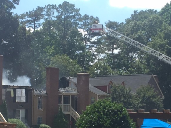 Heavy flames could be seen pouring from units at the complex near the intersection of Strickland and Six Forks roads.