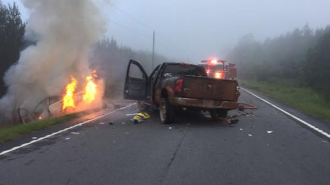 Both vehicles were on fire when multiple fire departments were dispatched to the scene, according to the Roebuck Fire District.