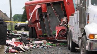 The truck driver was spotted walking around after the accident, but witnesses tell reporter Drew Wilson that he was transported to the hospital to be checked out.