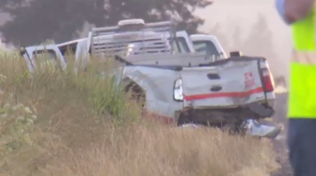 Both workers were inside a pickup truck at the time of the crash.