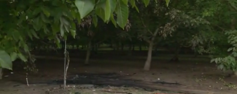 Visible signs at the crash scene show the car crossed over an irrigation ditch and slammed hard into a large walnut tree, severing the Honda into two large pieces. The second half traveled another 30 to 40 feet before coming to rest and becoming engulfed in flame.