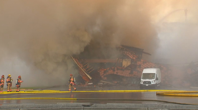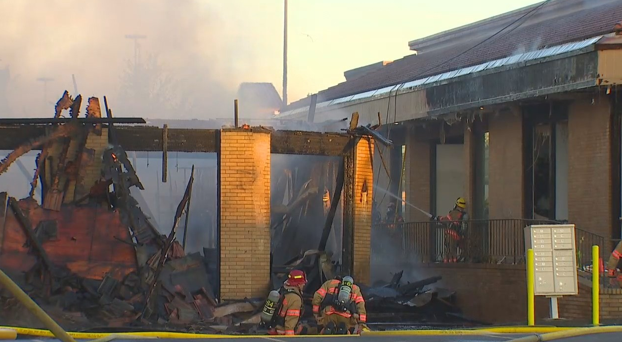 South King Fire and Rescue officials said the fire spread from business to business through the attic. Eventually the roof collapsed. A fire fighter sustained a minor injury, but no one was seriously hurt.