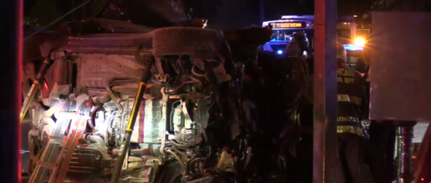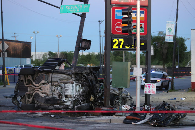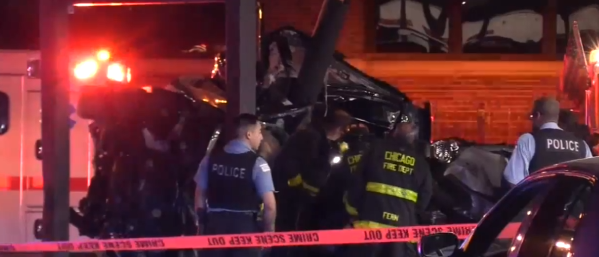 The wreckage of two vehicles could be seen at a gas station at Roosevelt and Kostner as police investigated.