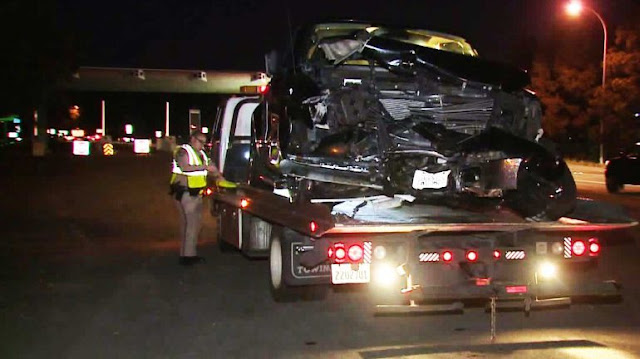 When authorities caught up with the car, it had collided head-on with a Ford F-150 just 300 yards east of the toll plaza shortly after 4 a.m. that morning.