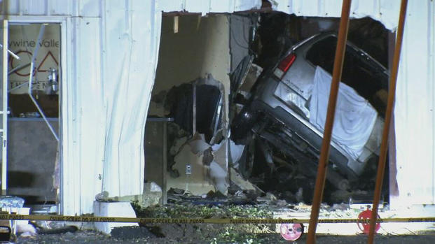 Officials say the driver lost control of her vehicle and crashed into the building; the impact of the crash resulted in a fire.