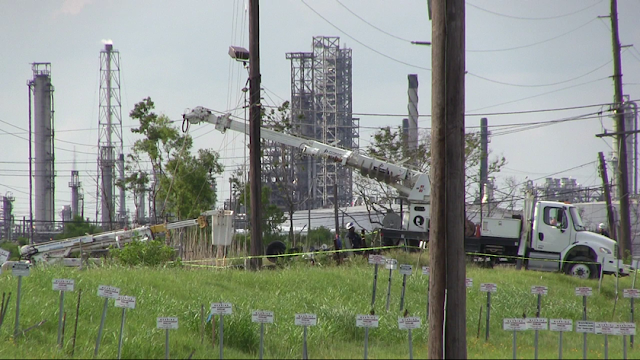 A source familiar with refinery operations said the worker was working near a crane when it apparently fell over on him.