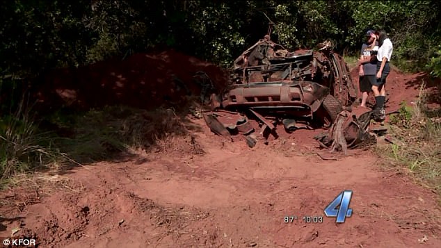Pottawatomie County sheriff's deputies responded to the scene and finished digging up the SUV, which was wrapped in plastic. They dragged the vehicle out of the hole and tore off the doors, discovering to Green's relief that there were no bodies inside.