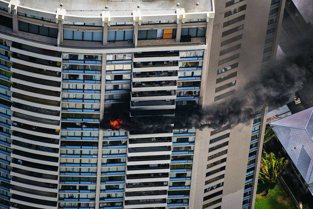 “Paramedics are expediting emergency treatment with a triage location inside the building,” Shayne Enright told The Honolulu Star Advertiser. The paper described the scene: “Flames were lapping out from the building and glass from the windows and window frames rained down on the ground. Heavy black smoke was visible from miles away.”