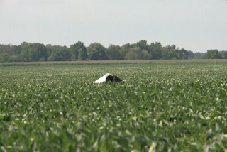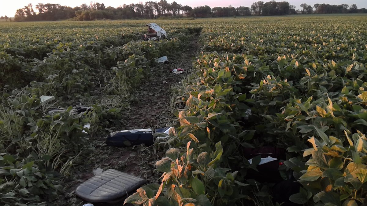 "Those coordinates were crucial in locating this crash quickly," Brown said. "Even with the coordinates it can be very difficult. As you can tell out here there is no artificial lighting at all, the crash wreckage is very low to the ground, and the soybeans effectively hide it."