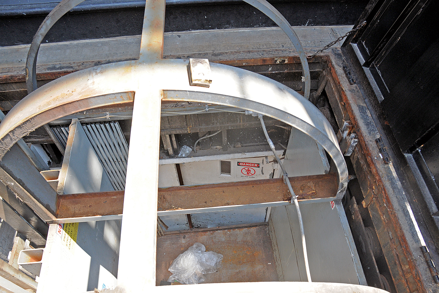 The worker was pinned under an elevator that is used to bring down supplies from Great Jones Street to the basement of 380 Lafayette St. (DNAinfo/Ben Fractenberg)