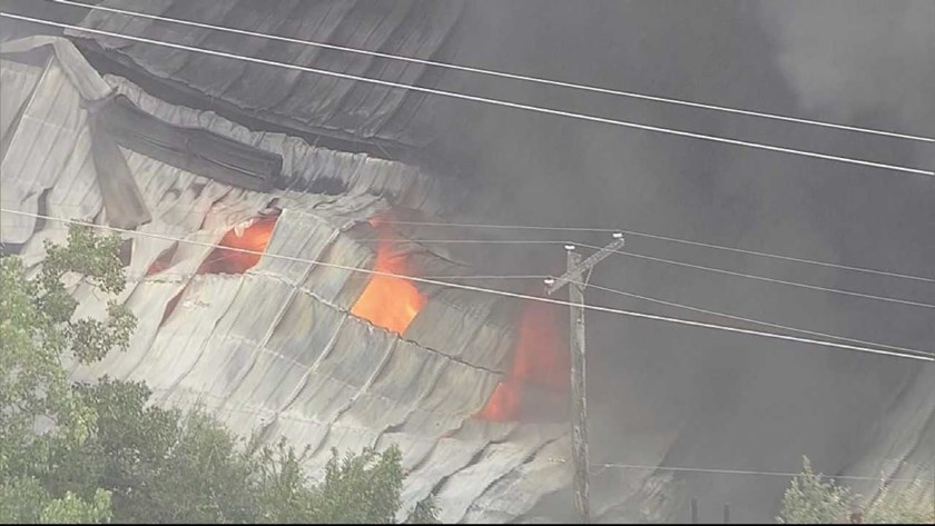 Firefighters were putting out the last of the flames from a massive five-alarm fire at a warehouse in Fort Worth late Friday afternoon.