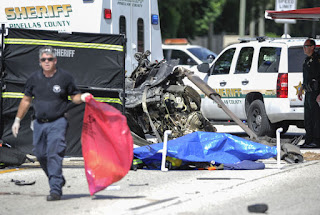 The cars were then spotted on Tampa Road. They split up, and the Explorer hit the Camry before smashing into a billboard pole and several parked cars, spinning and rolling down Tampa Road in flames. Two of the dead boys were found in the wreckage; the third had been thrown onto the street.